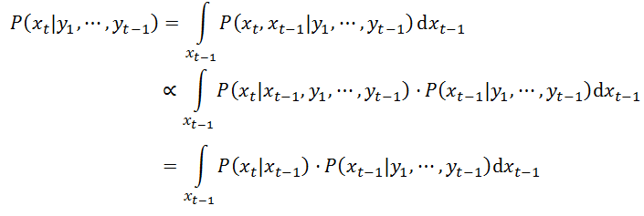 当中,P( xt | y1, … , yt-1)就是Prediction(预測),由于它表示的意义是已知从1到t-1时刻的观測值y1, … , yt-1的情况下求 t 时刻的状态值xt。