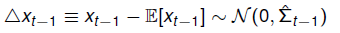 接下来,我们引入一个服从零均值高斯分布的(噪声)变量 Δxt-1。