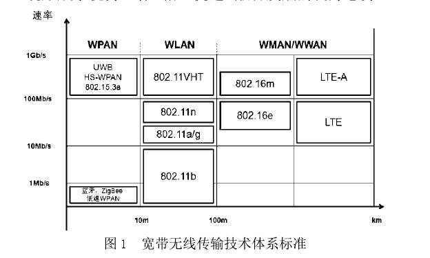 按照传输距离可分为:基于 IEEE802.15 的无线个域网(WPAN)、基于 IEEE802.11 的无线局域网(WLAN)、基于 IEEE 802.16 的无线城域网(WMAN)和基于 IEEE 802.20 的无线广域网(WWAN)等四类标准,以及 3GPP 制定的 LTE 长期演进计划。但是,由于各种原因,3GPP2 放弃了超宽带 UWB 标准。通过市场竞争与技术发展,LTE 长期演进计划和 IEEE 802.16(Wi MAX) 成 为 ITU 的 主 流 标 准。 其 中,WLAN标准(Wi Fi)也是IEEE推出的比较成功的杰作,大量用于社会各个领域。与蜂窝移动系统相比,它的主要问题是对移动性的有限支持。然而,IEEE 的标准化也在朝增加移动性这个方向发展。而 3GPP 的LTE 长期演进计划对用户移动性(如无缝切换、漫游)特别重视,首先将其纳入标准中,发挥了主导作用。总体上,这些宽带接入技术各自具有独特的优势和特点应用于不同的场景和范围,与公众移动通信系统形成了优势互补、相互促进、融合发展的良好态势。
