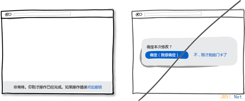 假设你刚点击了一个连接或者按钮,撤销操作可以让操作流畅自然,这也符合人类的本能。而每次操作都弹一个确定框则好像是在质问用户你明白不明白这个操作会产生什么后果。我还是更习惯假设用户每次操作都是正确的,其实只有极少数情况下才会发生误操作。所以,为了防止误操作而设计的确认窗口其实是不人性化的,用户每次操作都需要进行毫无意义的确定。所以请考虑在你的产品里实现撤销操作来增加用户的操作友好度吧。