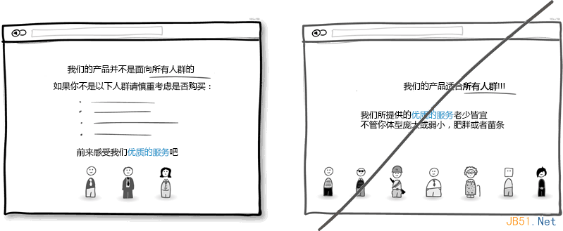 你是想把产品做成大众化的呢还是有精确的适用人群?在产品定位上你需要更精确些。通过不断了解目标客户的需求及标准,你能把产品做得更好得到更多与客户交流的机会,并且让客户觉得你很专业,在这方面是独家提供的优质服务。把产品定位得精确的风险就是可能缩小了目标潜在客户的范围,也使自身变得不那么全能。但这种做得更专业的精神却反过来会赢得信任,权威。