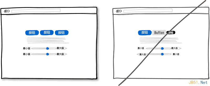 自从Donald Norman的一系列著作面世后,界面设计中尽量保持一致性成了一个普遍遵循的准则。在设计中保持一致性可以减少用户的学习成本,用户不需要学习新的操作。当我们点击按钮,或者进行拖拽操作,我们期望这样的操作在整个程序的各个界面都是一致的,会得到相似的结果出来。反之我们需要新情境下重新学习某种操作会产生何种结果。可以在很多方面下功夫来实现一个一致的界面,包括颜色,方向,元素的表现形式,位置,大小,形状等。不过在让界面变得一致之前,记住一点,适当的打破整体的一致性也是可取的。这偶尔的不一致性的设计用在你需要强调的地方可以起到很大的作用。所以世事无绝对,我们应遵从一致的设计准则,但适当地打破这种常规。