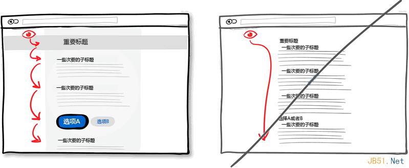 过程边框会喧宾夺主。不用说,边框确实在划分区域进行版块设置时有很大的作用,但同时其明显的线条也会吸引走用户的注意力。为了达到划分版块又不转移用户注意力的目的,在排版时可以将界面上不同区域的元素通过空白进行分组,用上不同的背景色,将文字对齐方式进行统一,还有就是为不同区域设置不同的样式。当使用所见即所得的界面设计工具时,我们经常在界面上方便地拖出很多区块来,这些区块多了就会显得杂乱无章。所以我们又会到处放些横线来分界。一个更好的做法是将区块垂直对齐,这样做不会让那些多余的线条来扰乱视觉。
