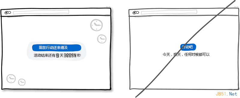 适当的紧迫感是个有效的战术可以让用户立即做出决定而不是等上个十天半个月。重要的是这种战术屡试不爽,因为它暗示了资源的紧缺或者活动的时间有限,今天可以买,但明天可能就无法这么低价了。另一方面,这一战术也让用户感到会错失一次大好的机会,再一次,应用了人们害怕失去的本性。当然,这种战术会被一些人嗤之以鼻,认为是不耿直的做法。不过,这只是种战术而以,并且在保持合法性的前提下应用也无伤大雅。所以请不要为了营销而在界面上制造紧迫的假象。