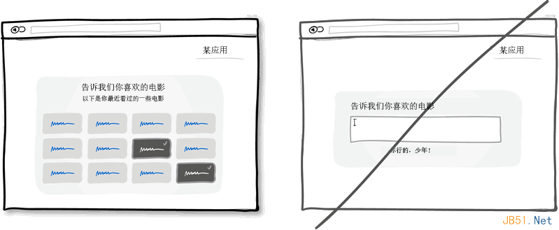 这一界面设计中的经典准则是有心理学依据的,相比要让某人回想想某样东西,从一堆东西中认出某样东西会更容易些。辨识出一样东西只需要我们稍微回忆一下,通过一些线索就可以完成。而回想则需要我们全面搜索自己的大脑。也许这也是为什么试卷上选择题会比简答题做得快的原因。所以试着在界面上展示一些用户之前涉及到的信息让他们进行选择,而不是让他们想半天然后自己填写。