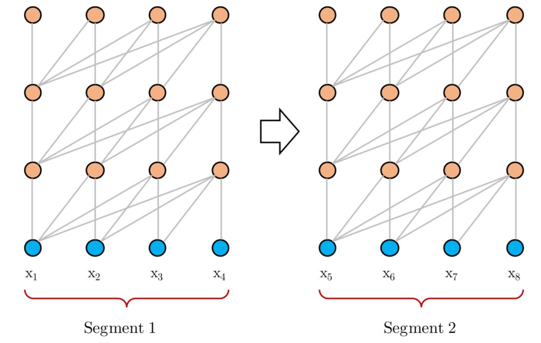 其实思想很简单,因为一般训练 Transformer 时,会按照一定长度,将文本处理成一段(segment)一段的。比如说 BERT 预处理时,就会先处理成一个个 512 长度的样本,即使可能处理前的文本更长。这样子的话,有些更长的上下文信息,模型就是学习不到的。