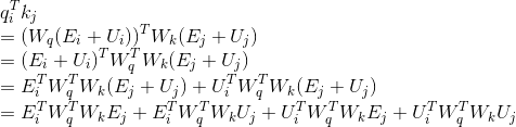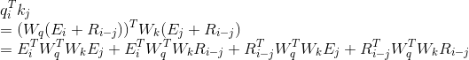 先把有位置信息 U_j 的地方都替换成相对位置信息 R_ij;
