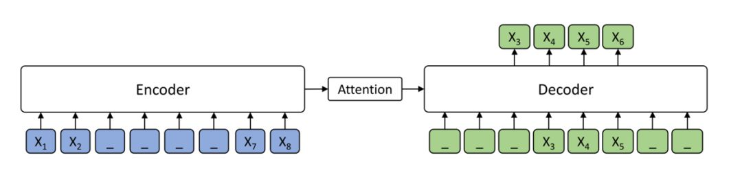 它的思路是在预训练阶段,对于一句话,我们先遮盖掉,比如说图中的一句话 12345678,我们遮盖掉 3456,然后将被遮盖的 1278 输入 encoder,获得上下文双向信息,之后以此为基础,用 AR 的方式依此预测 3456.