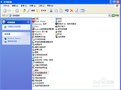在控制面板中双点击“添加或删除程序”。