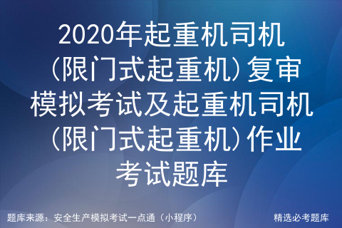 以上是2020年起重机司机(限门式起重机)复审模拟考试及起重机司机(限门式起重机)作业考试题库。支持全国各地区精准起重机司机(限门式起重机)考试试题,支持安全资格证,特种作业操作证,职业技能鉴定等工种题库练习。