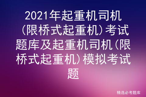 2020起重机司机(限桥式起重机)考试及起重机司机(限桥式起重机)复审模拟考试,包含起重机司机(限桥式起重机)考试答案解析及起重机司机(限桥式起重机)复审模拟考试练习。由安全生产模拟考试一点通公众号结合国家起重机司机(限桥式起重机)考试最新大纲及起重机司机(限桥式起重机)考试真题出具,有助于起重机司机(限桥式起重机)模拟考试软件考前练习。