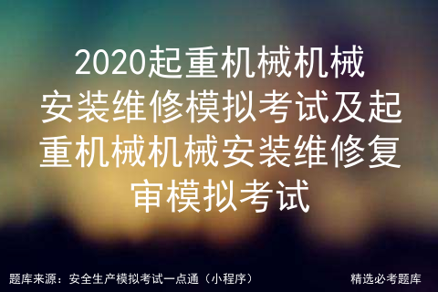2020起重机械机械安装维修模拟考试及起重机械机械安装维修复审模拟考试,包含起重机械机械安装维修模拟考试答案解析及起重机械机械安装维修复审模拟考试练习。由安全生产模拟考试一点通公众号结合国家起重机械机械安装维修考试最新大纲及起重机械机械安装维修考试真题出具,有助于起重机械机械安装维修怎么考考前练习。