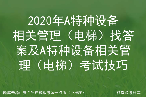 2021年A特种设备相关管理(电梯)考试总结为正在备考A特种设备相关管理(电梯)操作证的学员准备的理论考试专题,每个月更新的A特种设备相关管理(电梯)考试技巧祝您顺利通过A特种设备相关管理(电梯)考试。