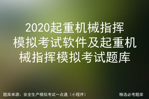 起重机械指挥考试资料根据新起重机械指挥考试大纲要求,安全生产模拟考试一点通将起重机械指挥模拟考试试题进行汇编,组成一套起重机械指挥全真模拟考试试题,学员可通过起重机械指挥模拟考试全真模拟,进行起重机械指挥自测。