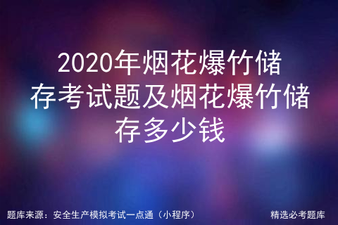 2020年烟花爆竹储存证模拟考试题库及烟花爆竹储存理论考试试题是由公众号安全生产模拟考试一点通提供,烟花爆竹储存证模拟考试题库是根据烟花爆竹储存最新版教材,烟花爆竹储存大纲整理而成(含2020年烟花爆竹储存证模拟考试题库及烟花爆竹储存理论考试试题参考答案和部分工种参考解析),掌握本资料和学校方法,考试容易。烟花爆竹储存考试技巧经过题库老师和烟花爆竹储存已考过学员的汇总,相对有效而可行的复习方式就是对烟花爆竹储存的试题攻克,进行多方面的试题训练。2020烟花爆竹储存证模拟考试题库及烟花爆竹储存理论考试试题个人、培训学校进行考试前有效训练,确保学员学习后能顺利通过考试。