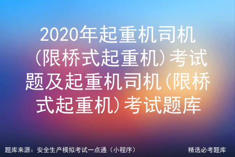 起重机司机(限桥式起重机)模拟考试参考答案及起重机司机(限桥式起重机)考试试题解析是安全生产模拟考试一点通题库老师及起重机司机(限桥式起重机)操作证已考过的学员汇总,相对有效帮助起重机司机(限桥式起重机)考试试题学员顺利通过考试。