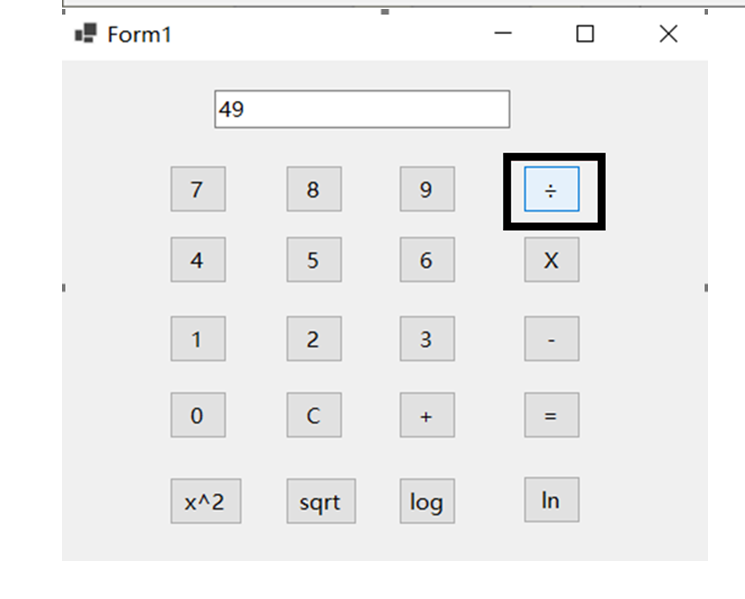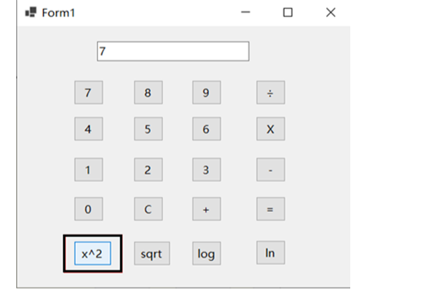 (20)在计算器中,增加四个功能键:x2,sqrt,log, ln 四个键,分别计算求平方,开方,