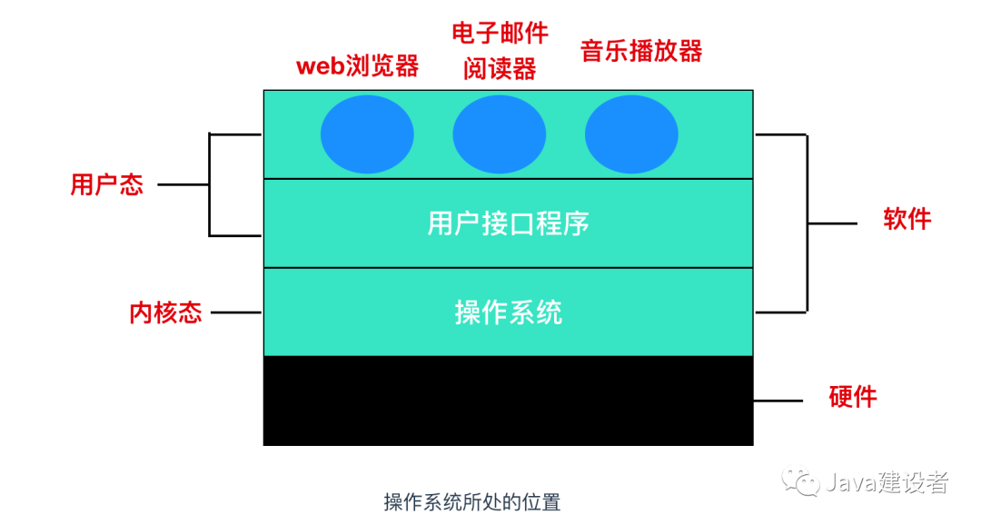 用户接口程序(shell 或者 GUI)处于用户态中,并且它们位于用户态的最低层,允许用户运行其他程序,例如 Web 浏览器、电子邮件阅读器、音乐播放器等。而且,越靠近用户态的应用程序越容易编写,如果你不喜欢某个电子邮件阅读器你可以重新写一个或者换一个,但你不能自行写一个操作系统或者是中断处理程序。这个程序由硬件保护,防止外部对其进行修改。