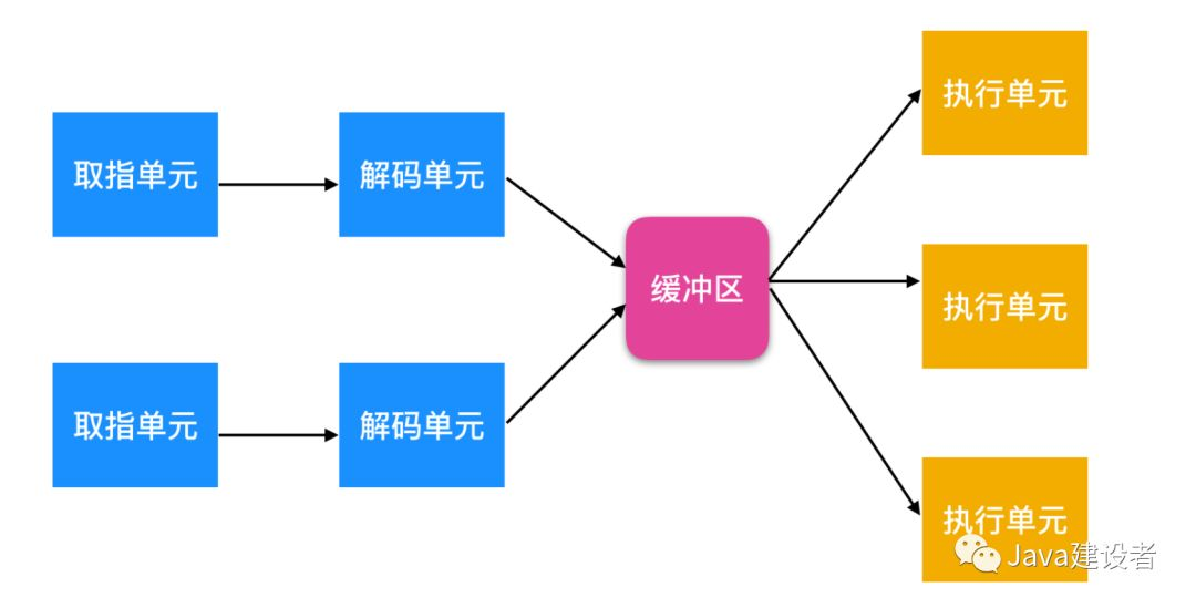 比流水线更先进的设计是 超标量(superscalar)CPU,下面是超标量 CPU 的设计