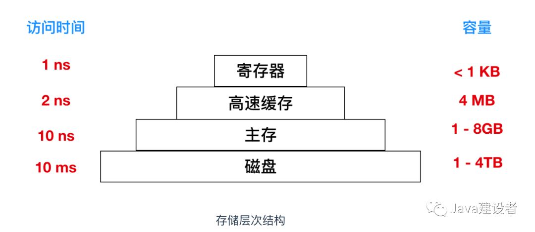 顶层的存储器速度最高,但是容量最小,成本非常高,层级结构越向下,其访问效率越慢,容量越大,但是造价也就越便宜。