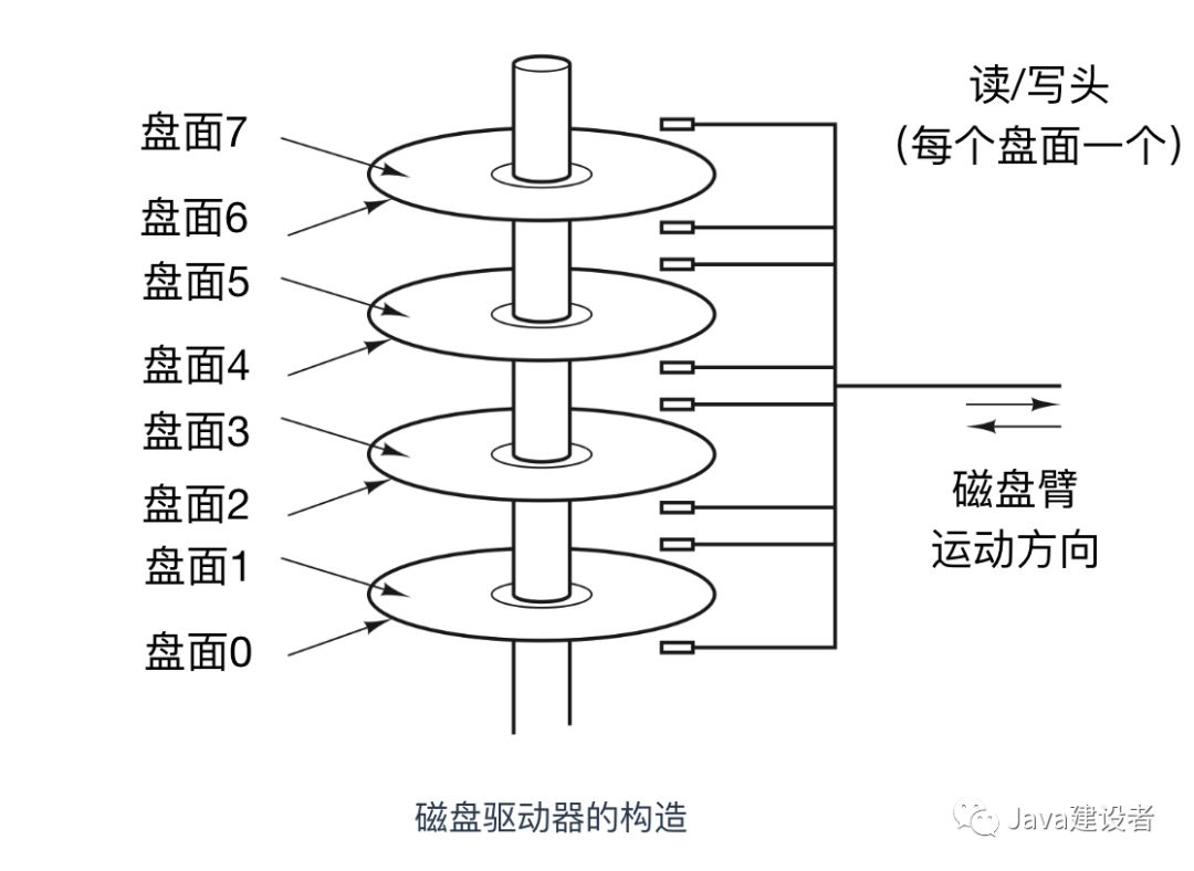 每个磁道划分若干扇区,扇区的值是 512 字节。在现代磁盘中,较外部的柱面比较内部的柱面有更多的扇区。机械臂从一个柱面移动到相邻的柱面大约需要 1ms。而随机移到一个柱面的典型时间为 5ms 至 10ms,具体情况以驱动器为准。一旦磁臂到达正确的磁道上,驱动器必须等待所需的扇区旋转到磁头之下,就开始读写,低端硬盘的速率是50MB/s,而高速磁盘的速率是 160MB/s。