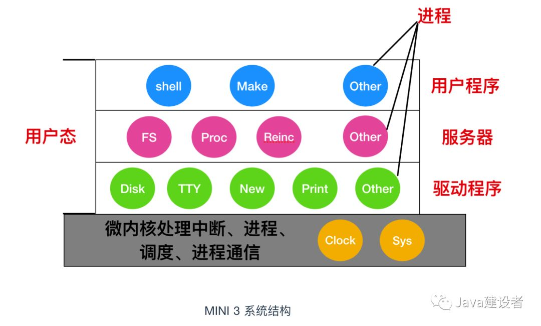 MINIX 3 是微内核的代表作,它的具体结构如下