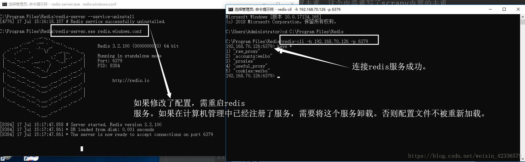4>选择其中一台机器,开启redis-server服务,并修改redis.windows.conf配置文件: