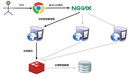 - 构建多级缓存架构:nginx缓存 + redis缓存 +其他缓存(ehcache等)。