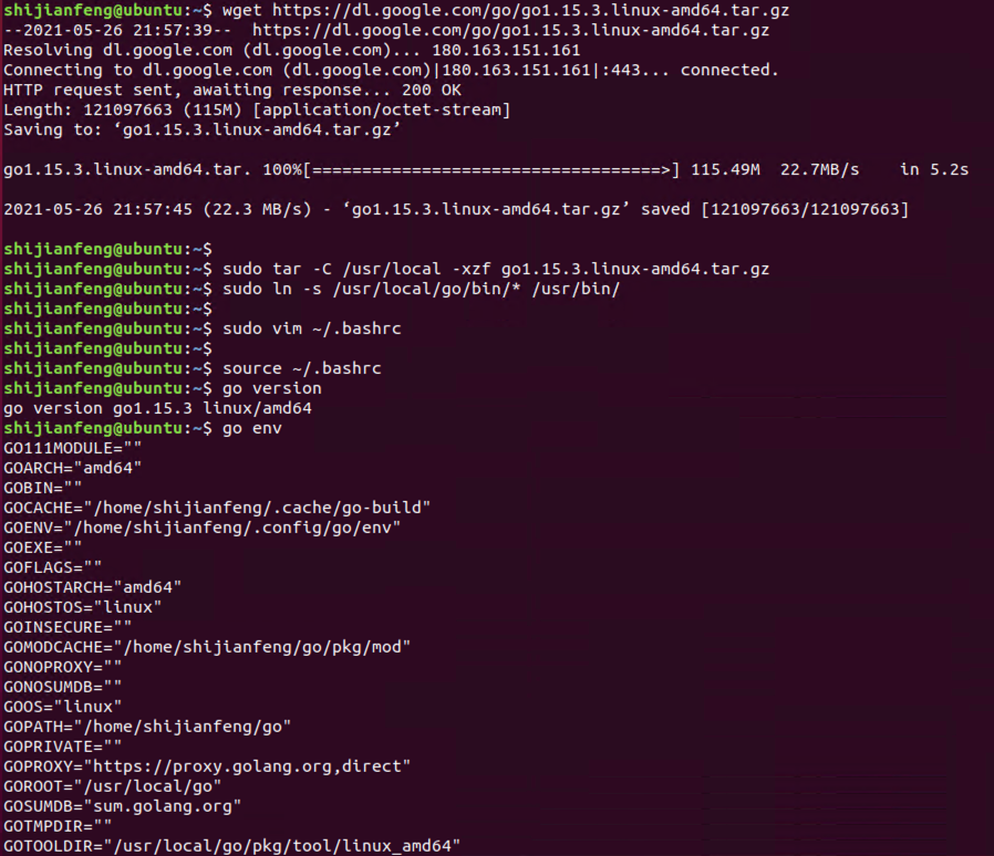 因为sudo apt install golang目前安装的版本是1.10,所以需要通过手动安装,若之前已经通过apt安装了golang,则可以参考https://shijianfeng.blog.csdn.net/article/details/117306277卸载。