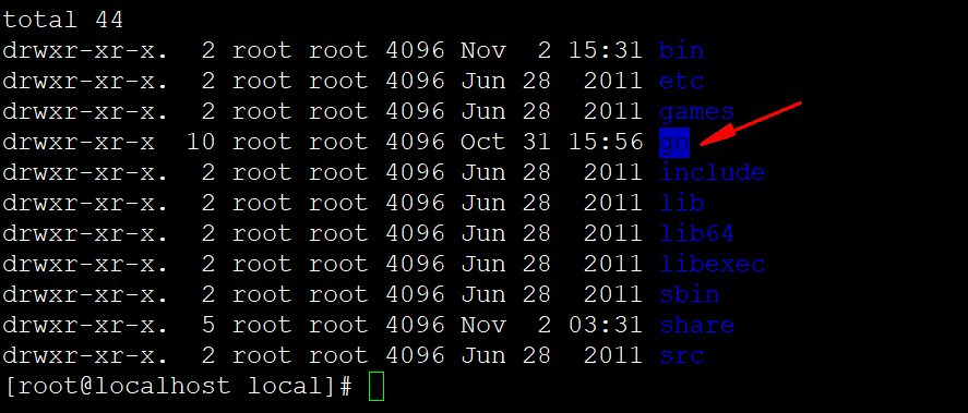 2.将golang安装包上传到Linux服务器,解压到/usr/local/目录(root用户)
