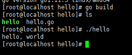 3.命令执行完之后你可以看到目录下会多出一个 hello 的文件,这就是我们编译之后的文件,执行我们的程序,只需要在当前目录下执行./xxx就可以
