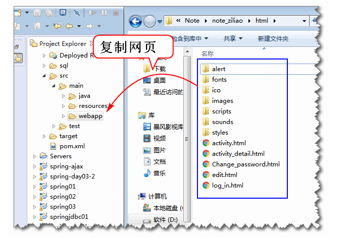 将html页面复制到 webapp 文件夹:
