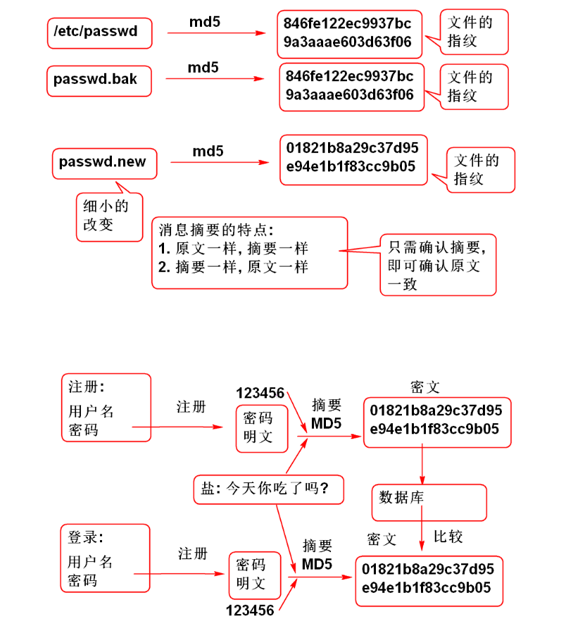 利用消息摘要技术加密用户密码, 避免保存密码明文, 可以有效的提供系统的安全性. 其原理如下: