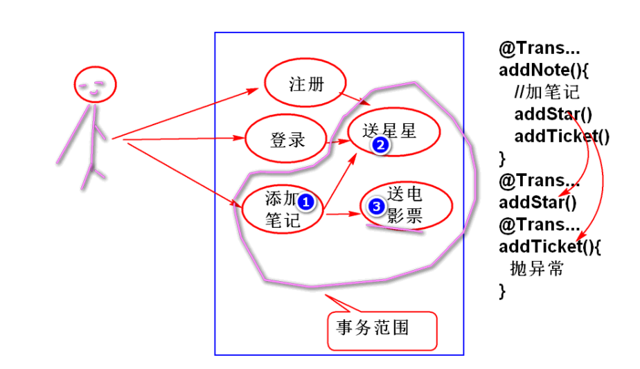 重构 addNote方法, 实现添加笔记时候送星星功能, 进而实现事务的传播: