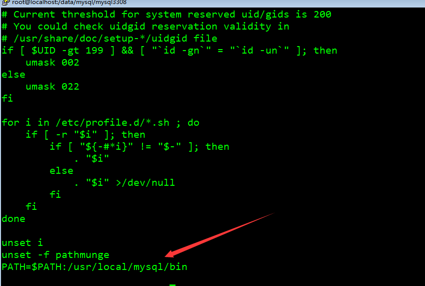 在profile文件最后一行加上下面代码:PATH=$PATH:/usr/local/mysql/bin