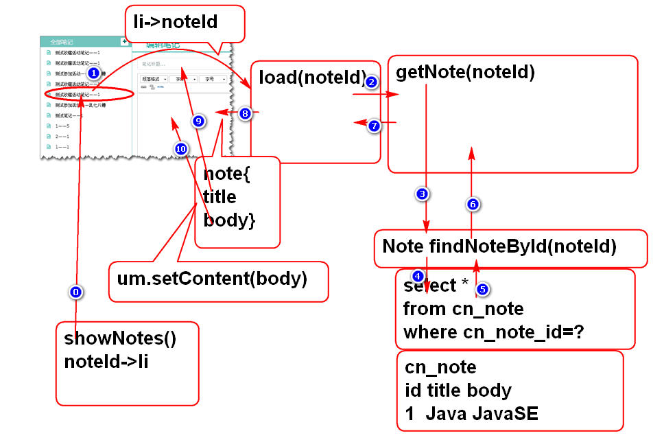 添加笔记点击加载笔记的事件处理方法 loadNote