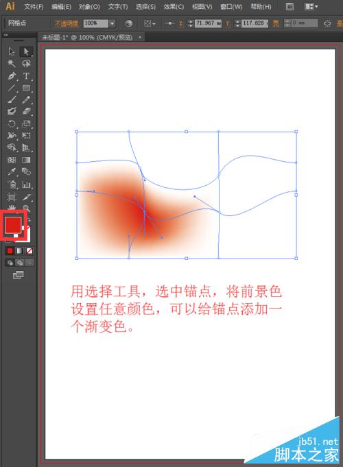 6、用直接选择工具,选中某一个锚点,我们任意设置一个颜色,可以给选择锚点的周围添加上一个渐变色。