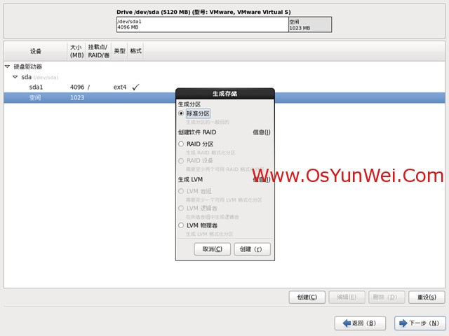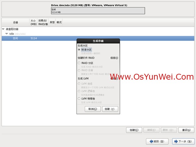 可以看到硬盘的容量,我这里显示的是5G,现在自定义分区。