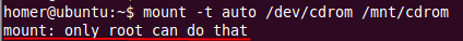 homer@ubuntu: ~$ mount -t auto /dev/cdrom /mnt/cdrom