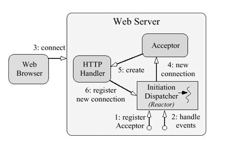 HTTPHandle是事件处理器,主要负责事件来临之后进行的操作,Initiation Dispatcher核心就是用select、poll、epoll实现的,当有请求到达Initiation Dispacher会通知http handler数据到来,应该去读去解析了,基本是http handle主缆了大部分的工作
