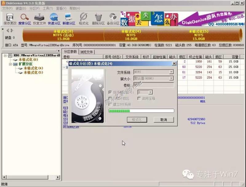 (5)上一步确定分区后会自动进行格式化操作,耐心等待完成即可