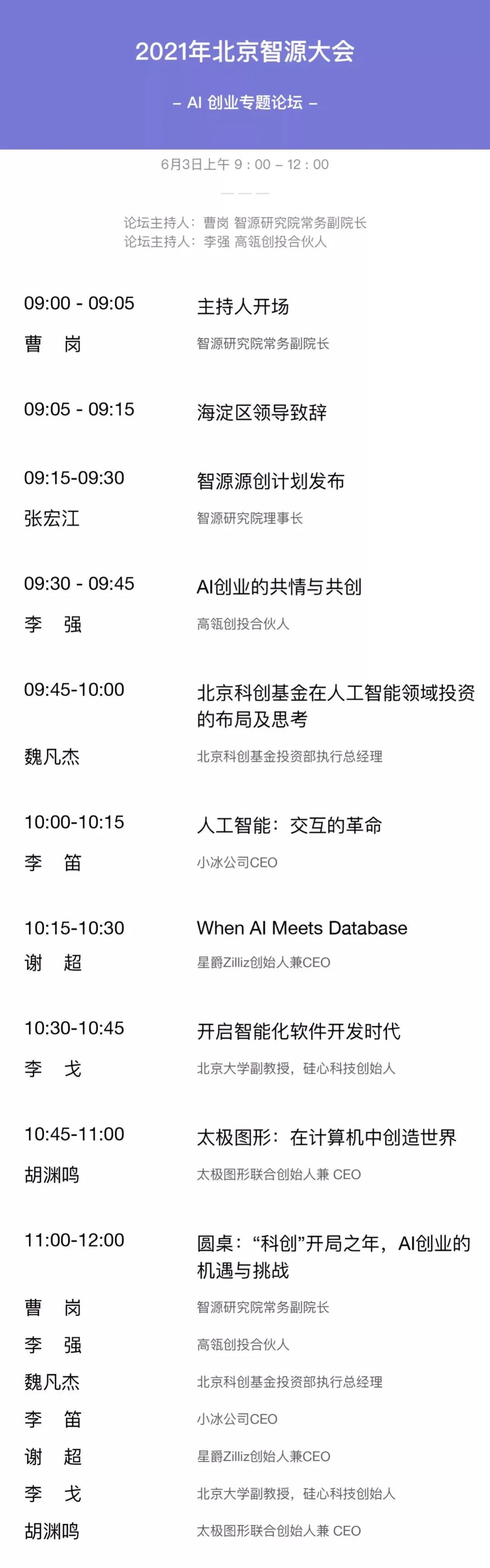 6 月 1 日至 6 月 3 日,2021 年北京智源大会召开在即。Zilliz 创始人兼 CEO 谢超受邀出席 6 月 3 日的 “AI 创业主题论坛”,将作 “When AI Meets Database” 主题报告,共话 AI 创业中的机遇与挑战。