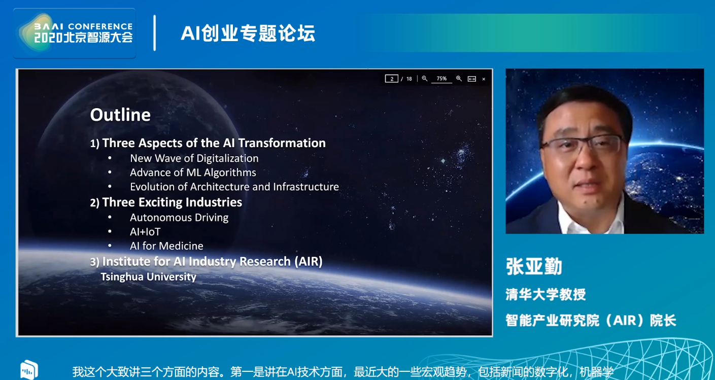 我是靠谱客的博主 风中指甲油,这篇文章主要介绍AI:2020年6月23日北京智源大会演讲分享之AI创业专题论坛——10:00-10:30张亚勤教授《智能产业新浪潮》,现在分享给大家,希望可以做个参考。