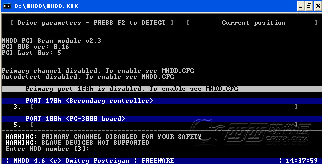 在维修大量有坏道的硬盘时发现单独使用PC 3 000修坏道后,用MHDD扫描还是有很多坏道遗留下来,需要配合其它软件的操作,才能真正的修坏道(包括正版的PC3 000也一样)。MHDD是一款绿色免费的检测修复工具,能够有效的检测出硬盘的坏道情况,从而进行修复,软件本身只有一百多K,但是功能却一点都不含糊。