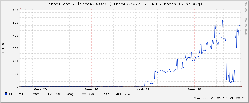 前几天东政同学反馈说Linode服务器快卡死了,今天有时间排查了一下具体原因,最终原因稍微有点悲壮:file_get_contents没有设置超时时间,加上我用的php5.2关于curl的代码有个bug,于是导致PHP进程进入死循环。