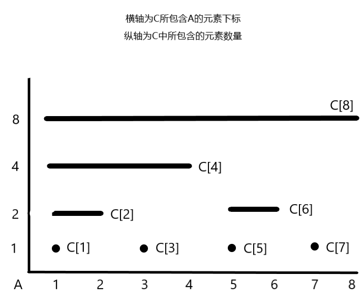 由于c[ i ]的长度为lowbit( i )可以总结出c[ i ] = a[i - lowbit( i ) + 1] + a[i - lowbit( i ) + 2] + …… + a[ i ]。