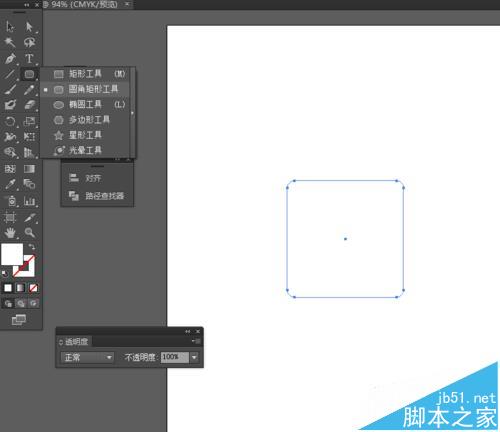 1、在Ai软件中,新建一个800*800的文档,选择圆角矩形工具,画一个圆角图形,如图所示