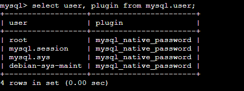 如果我们要配置密码,我们需要在同一命令中同时更改插件并设置密码。首先更改插件然后设置密码将不起作用,它将再次回退到auth_socket。