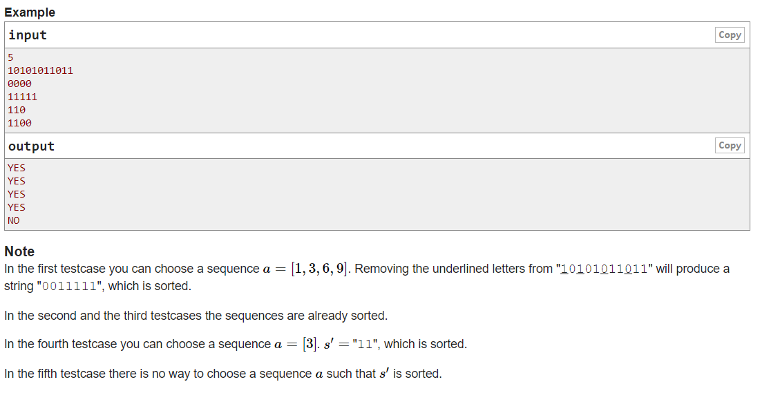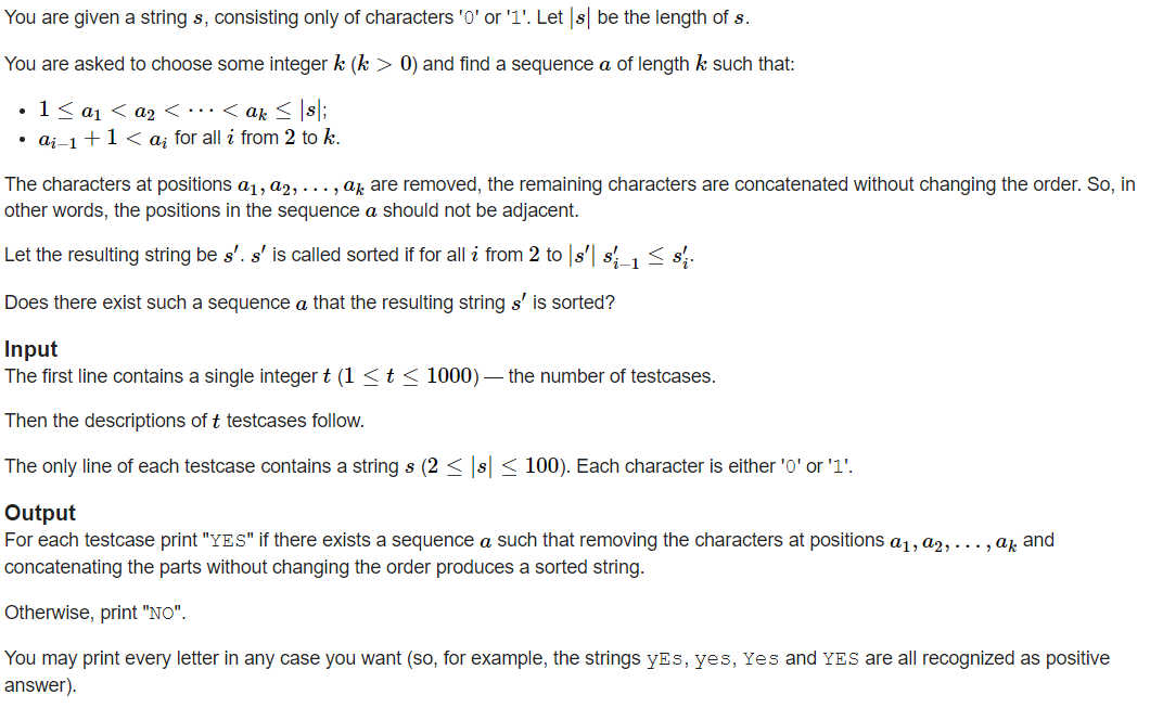 我是靠谱客的博主 有魅力玫瑰,这篇文章主要介绍Educational Codeforces Round 106 (Rated for Div. 2) B. Binary Removals(思维),现在分享给大家,希望可以做个参考。