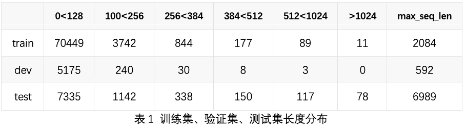 对于数据集中的长文本,由于观点型数据中指示性强的回答通常在文本的开头或结尾,因此可将长本文按照head-tail策略进行截断(保留前后max_seq_len//2个字符)。同时,对于长文本问题可以在模型训练时设置更长max seq len,本团队方案中将max seq len设置为256至384。